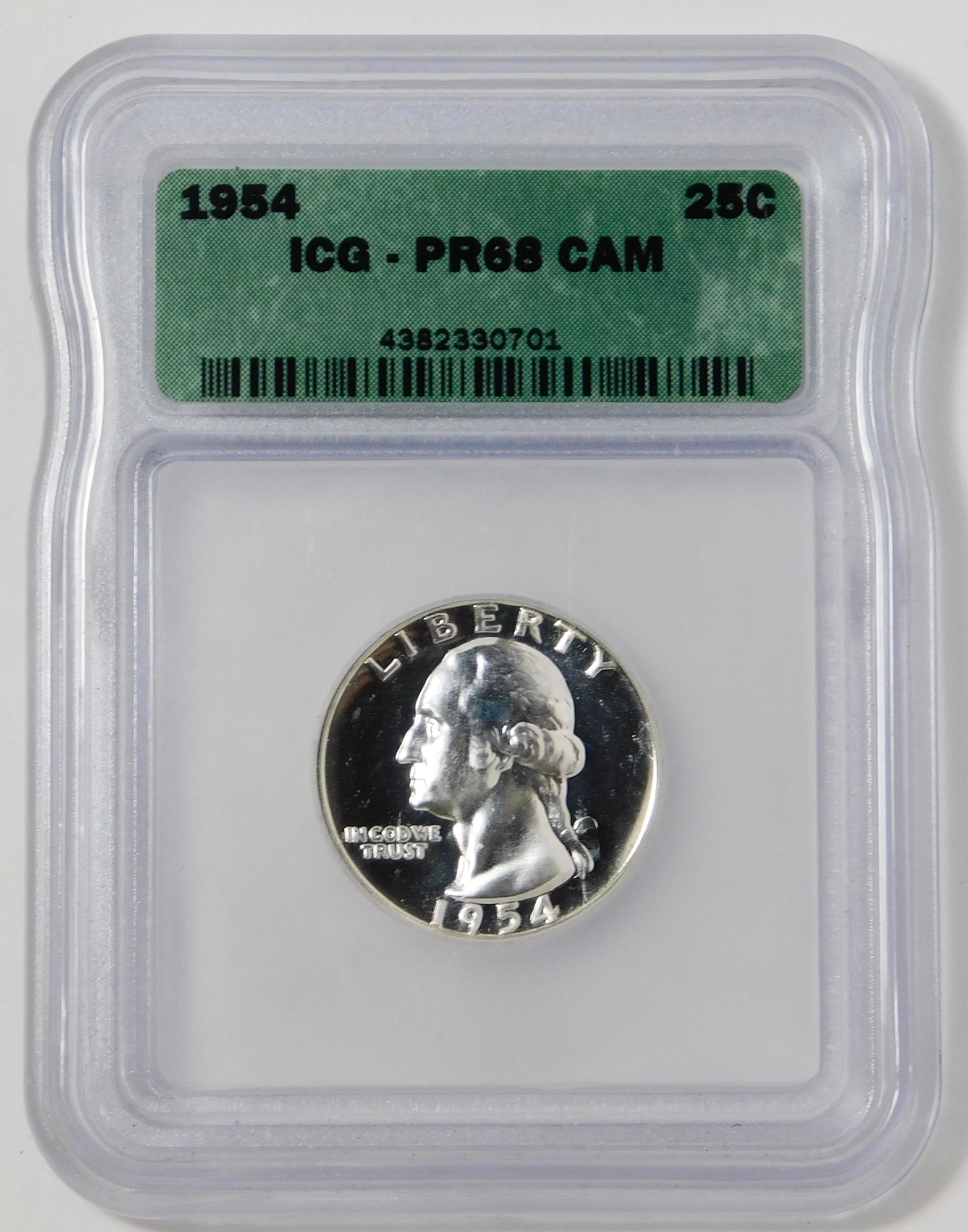 1954 Silver Washington Quarter HIGH GRADE! Certified by ICG PR-68 CAMEO. Price Trends $175.00