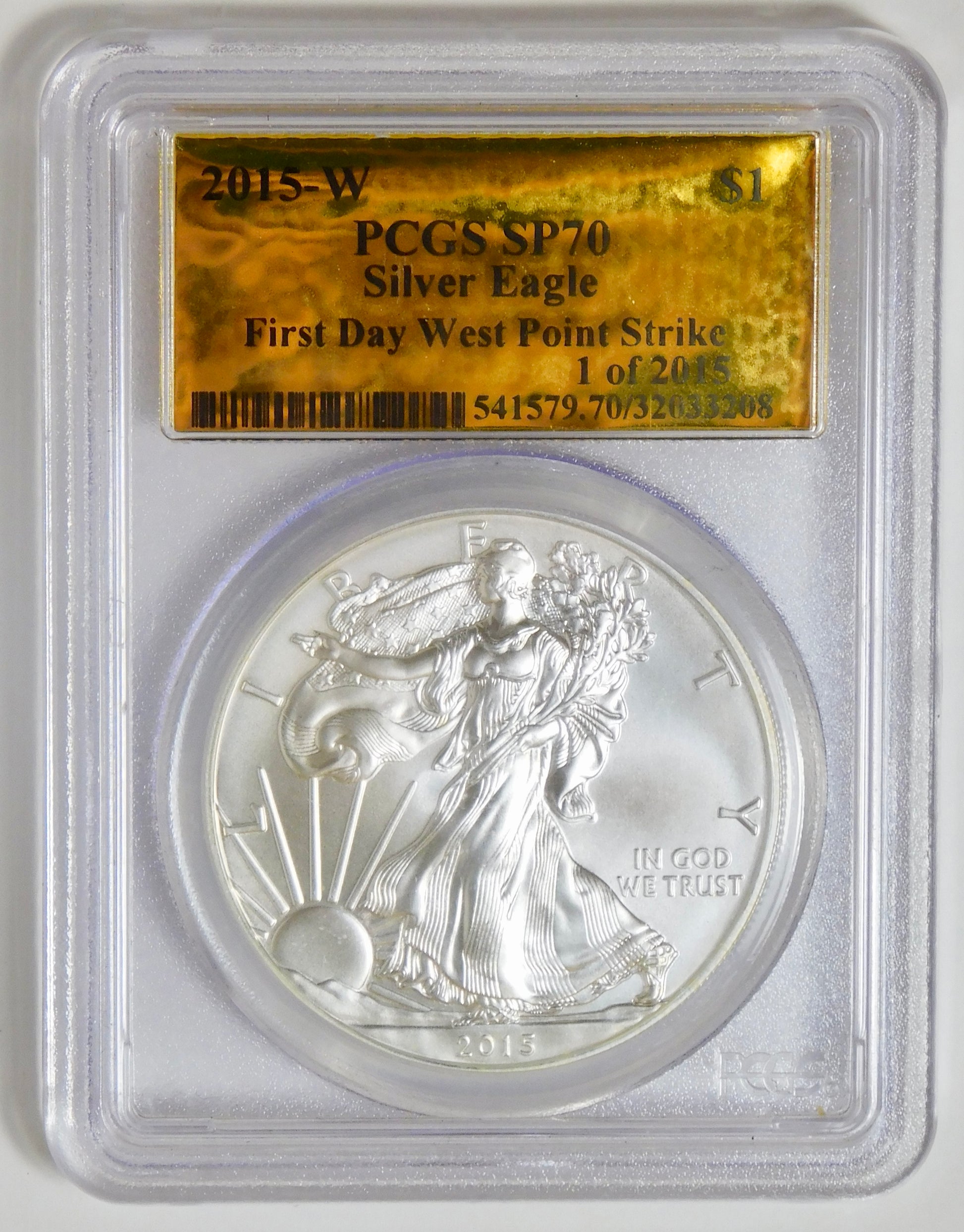 2015 W American Eagle Silver Dollar 'First Day Strike" West Point. Certified by PCGS SP-70
